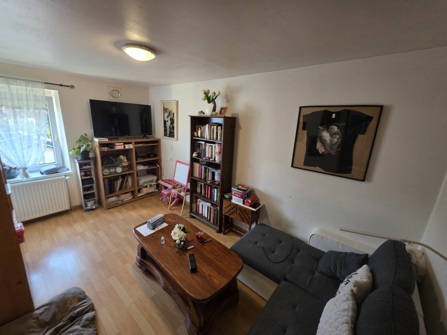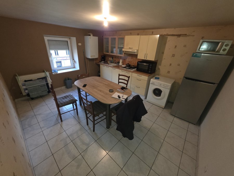 Au 1er étage: un grand F2 dont une pièce borne loué 400 €/mois.