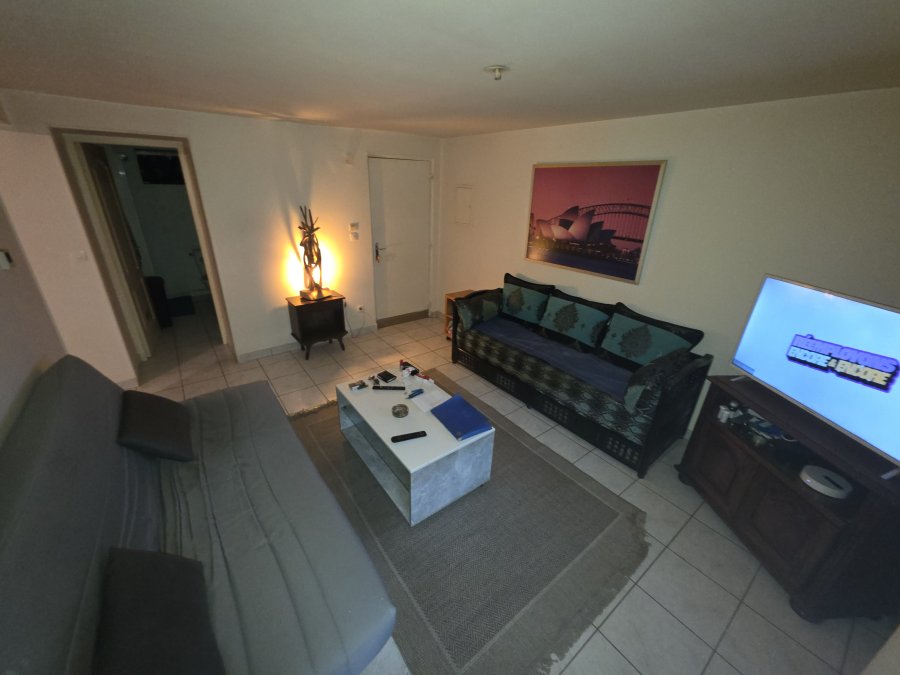 En RDC : un F1 bis dont une pièce borne loué 400 €/mois avec petit jardin à l'avant.