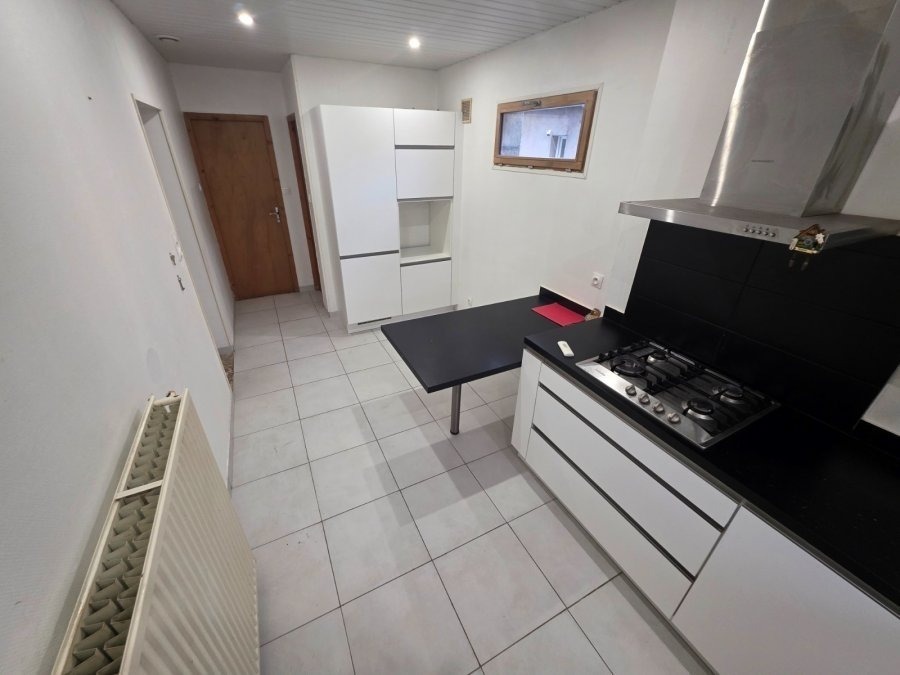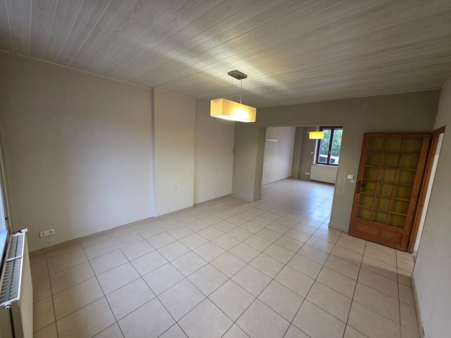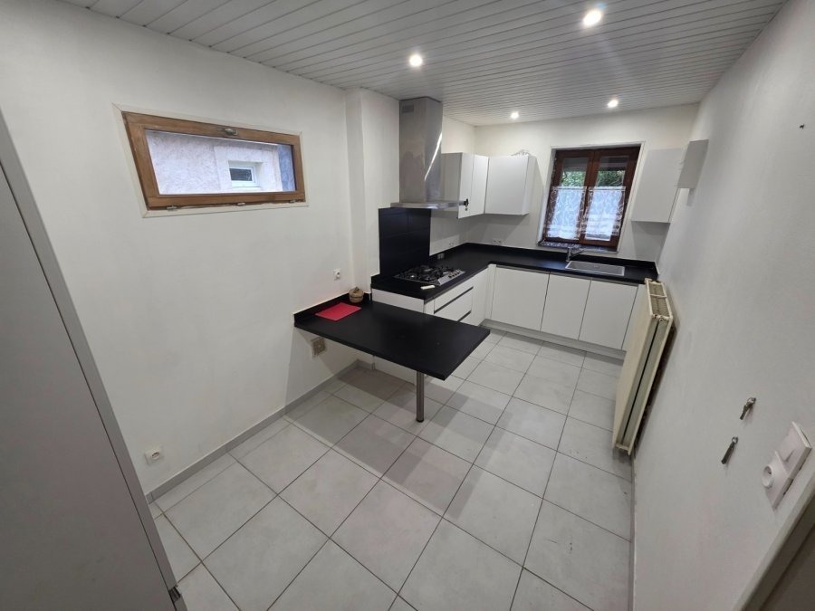 Entrée sur un spacieux salon/séjour avec accès caves, cuisine semi équipée, salle de bains avec espace buanderie, WC séparé.