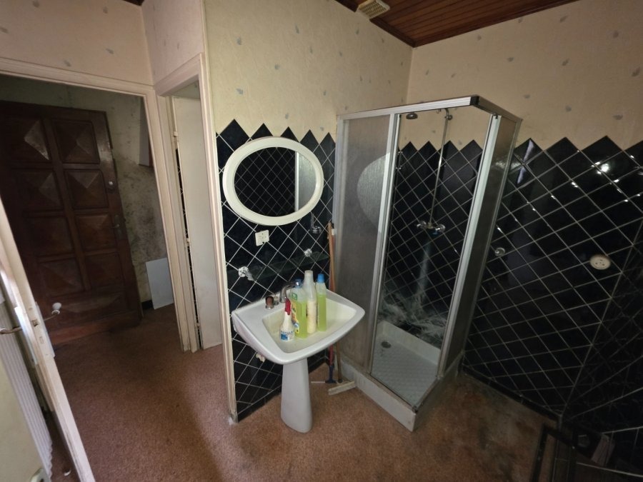 _ En rez-de-chaussée: 2 entrées, un salon donnant l'accès à la cave, cuisine, salle d'eau.