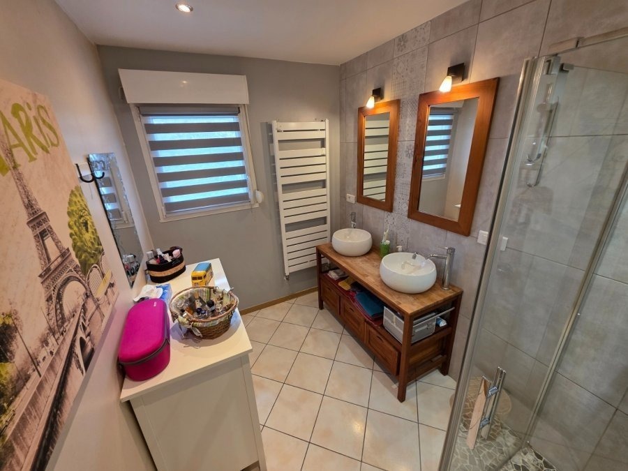 Au 1er demi niveau un dégagement desservant un WC séparé, 3 chambres dont une avec pièce dressing ainsi qu'une salle d’eau (douche Italienne et double vasques)